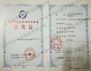 • 廣州市白蟻防治行業協會會員證